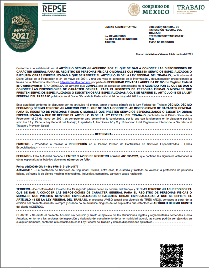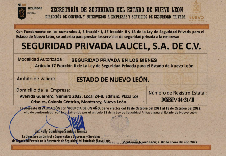 Estamos regulados y autorizados conforme al permiso de la Secreteria de Seguridad Pública del Estado para operar legalmente en la modalidad de seguridad privada y garantizar un servicio profesional.
